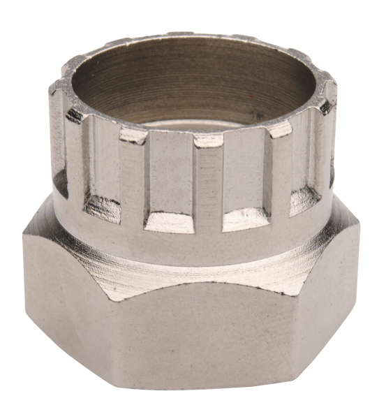 Универсальный инструмент Cyclo для снятия и установки локрингов кассеты и роторов с внутренними шлицами. Съемник выполнен из стали. Шлицы съемника не срывают крепежные грани (при оптимальных условиях). Конструкция позволяет проводить работу на втулках с осями под эксцентрик или на гайках. Для работы по снятию локрингов дополнительно потребуется ключ-хлыст для удержания кассеты, накидной ключ или вороток.